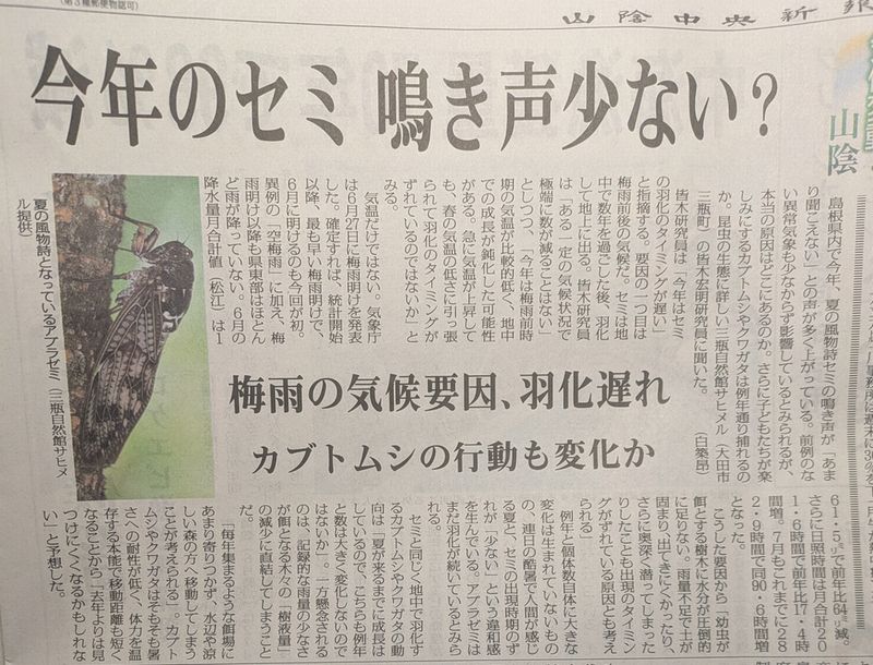 記事には、セミだけでなくカブトムシ等の昆虫についても書いてありますが、生態系が変化するのでしょうか?