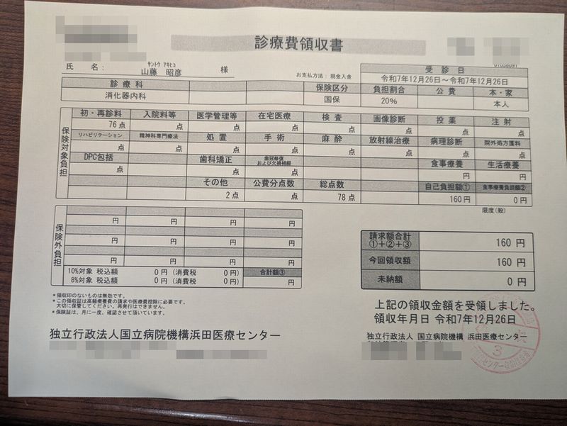 検査等があった時は、それなりの会計をしたのですが、説明を聞いた時の3回は、下記の領収書の通り請求額160円でした。