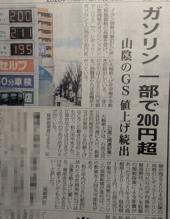 記事内に、江津市も200円を超える所も・・・。と。